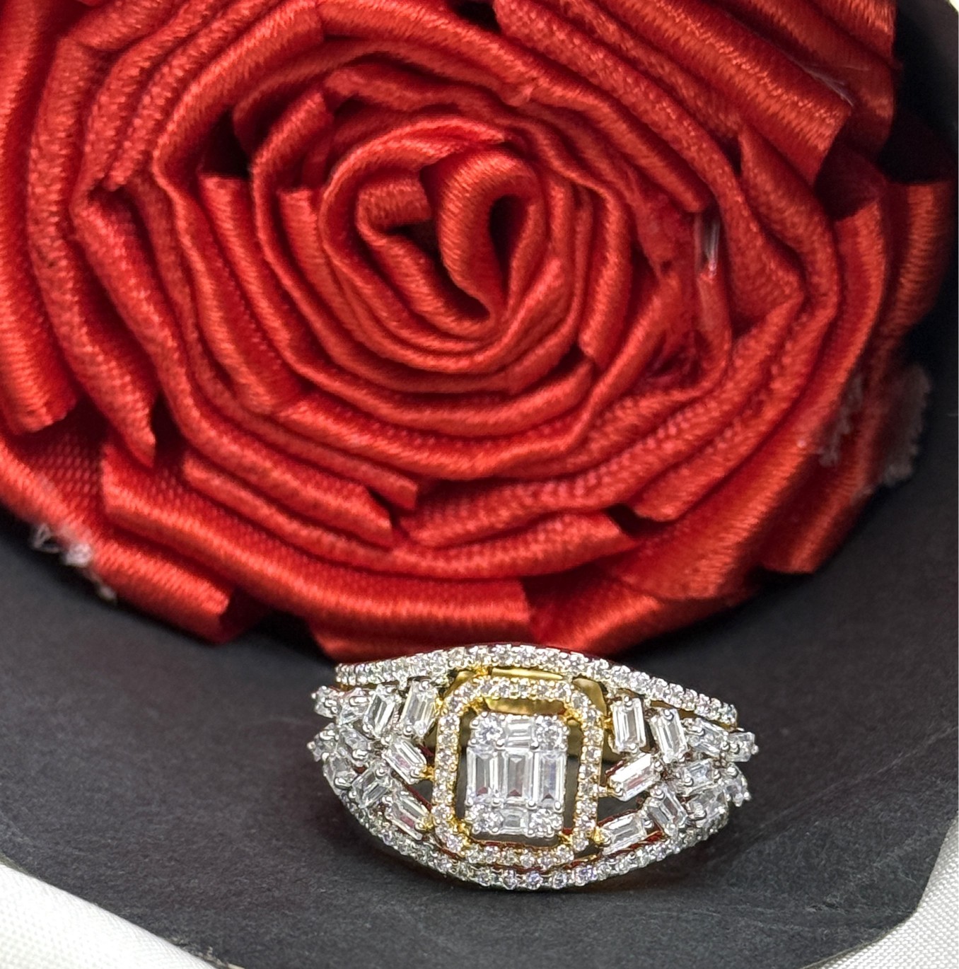 Additional sparkle is by high-grade cubic zirconia, offering the luxurious feel of real diamonds. Crafted from 925 silver, it ensures long-lasting shine and durability. Whether you’re gifting or treating yourself, this ring reflects artistry, sophistication, and radiant design.