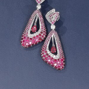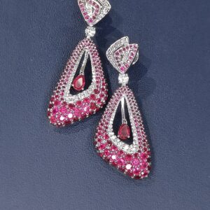 Step into the world of regal charm with Fineryy’s Crimson Majesty Ruby Drop Earrings, a dazzling creation that celebrates sophistication and bold elegance. Crafted in 925 sterling silver, these earrings showcase a brilliant cascade of deep red ruby stones framed by shimmering CZ accents, forming an intricate drop silhouette that captivates with every movement.