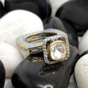 Every detail of this women’s ring is creat with care. Its comfortable square band offers a modern twist, while the enamel work adds softness. Thanks to the rhodium coating, tarnishing is minimiz—ensuring lasting shine. The Designer 925 Silver Square Band Ring With Solitaire Polki & Pastel Enamel is ideal for those who appreciate minimalism with a hint of sparkle. It’s also a thoughtful gift for birthdays, weddings, or special occasions.