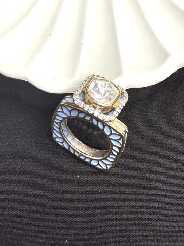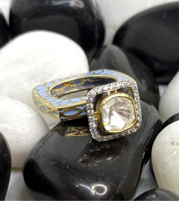 Radiate Grace and Sophistication – Ring With Solitaire Polki & Pastel Enamel