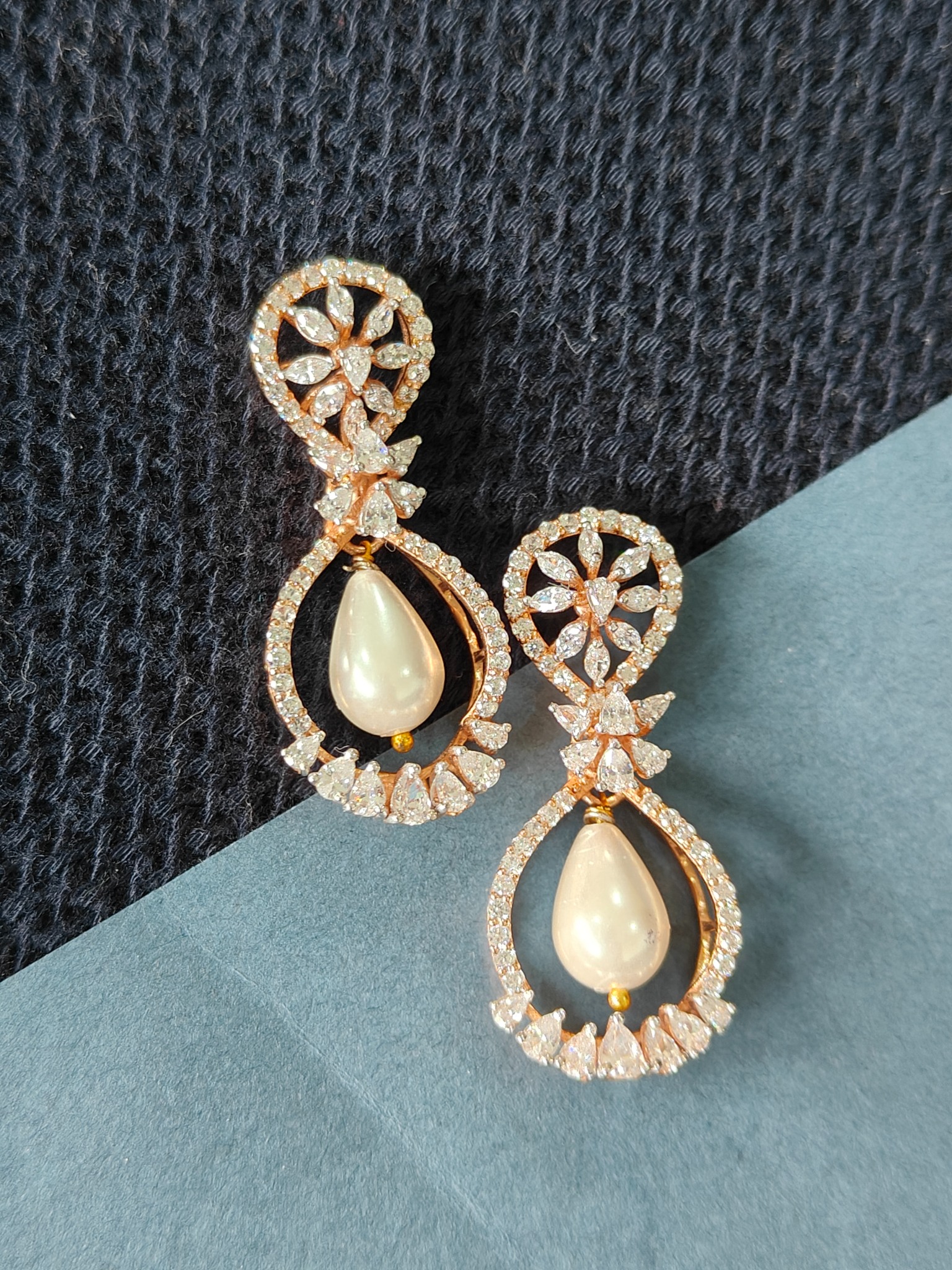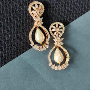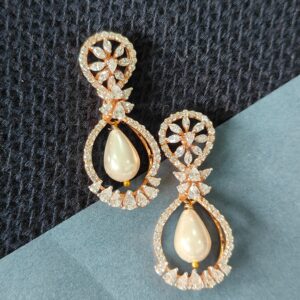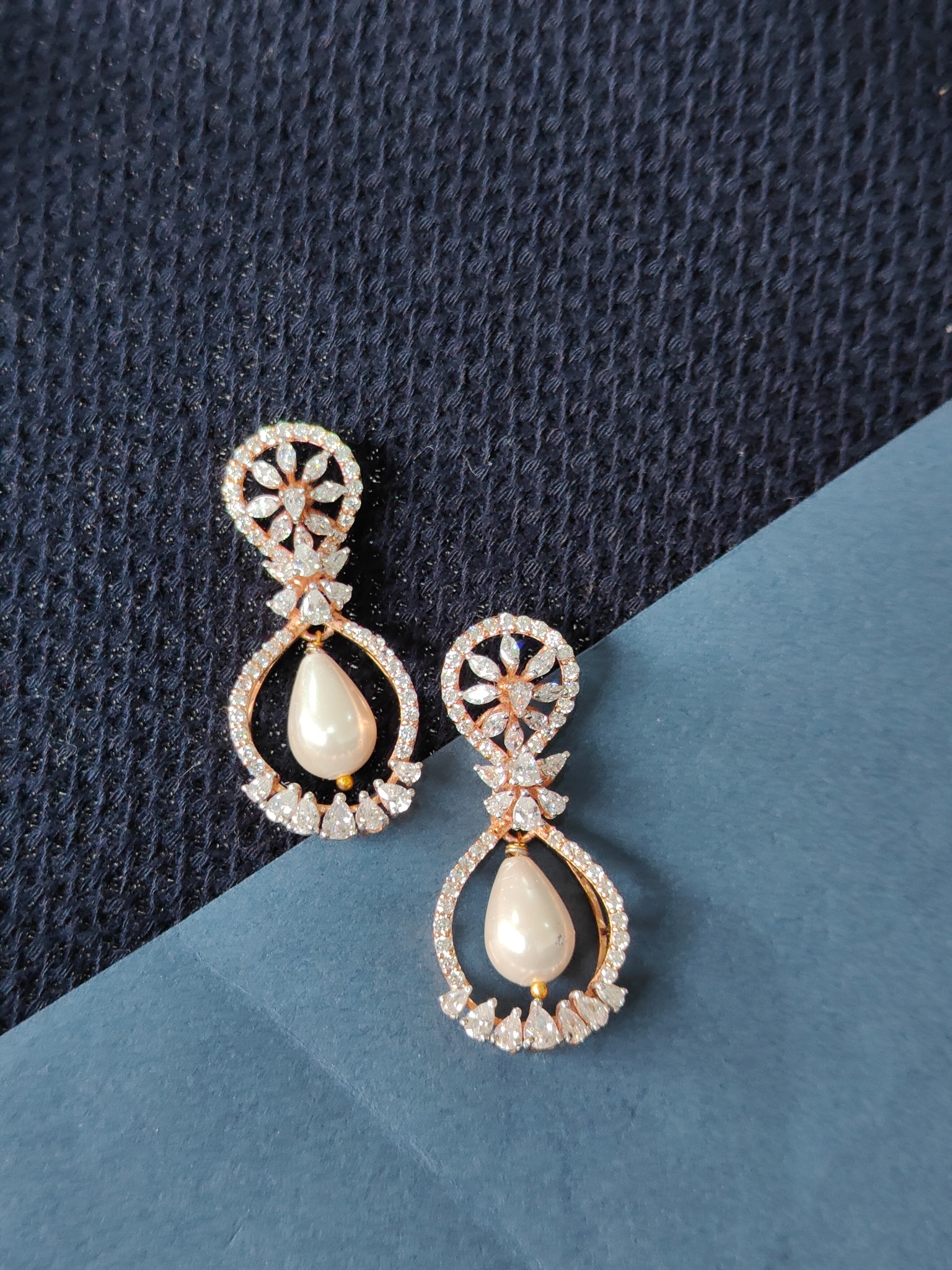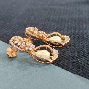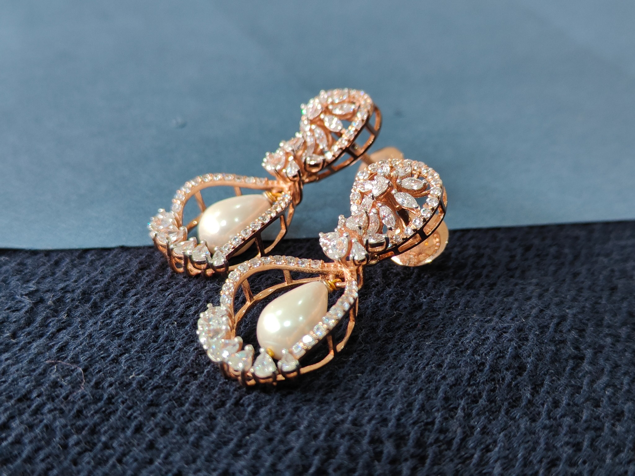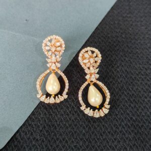Elegance redefined ✨ Crafted in 925 Hallmarked Sterling Silver, adorned with the finest Cubic Zirconia diamonds, and finished with a delicate drop-shaped Swarovski pearl. Complete your look with the timeless charm of a rose gold finish and screw-back comfort. Perfect for every occasion. 💎