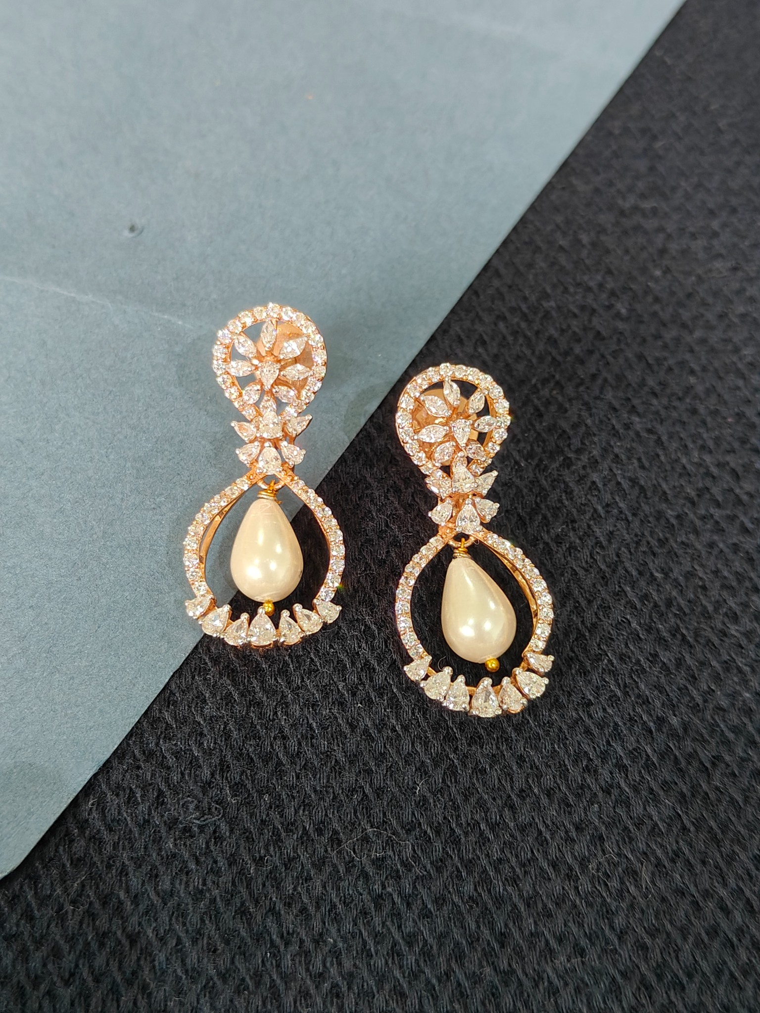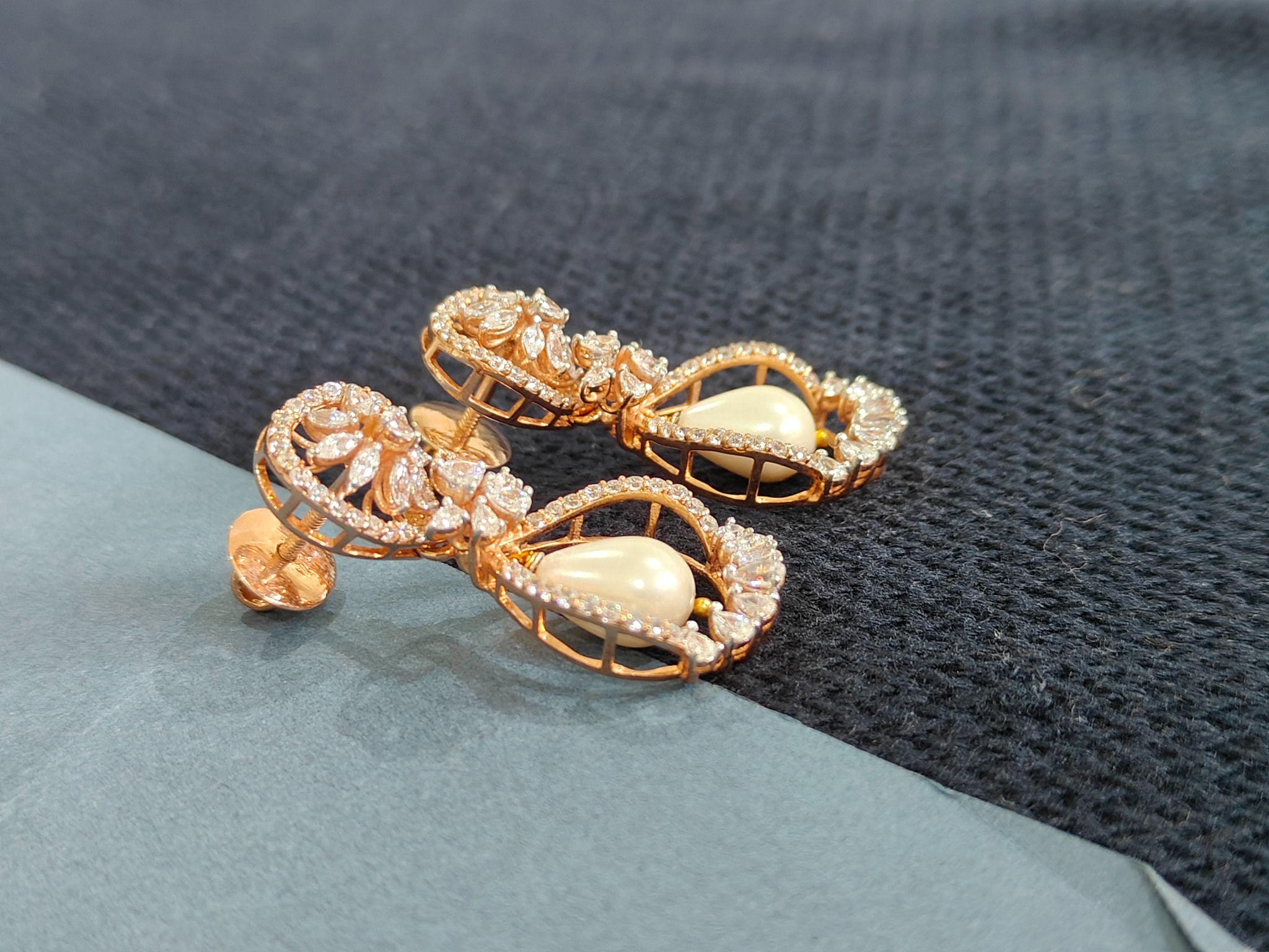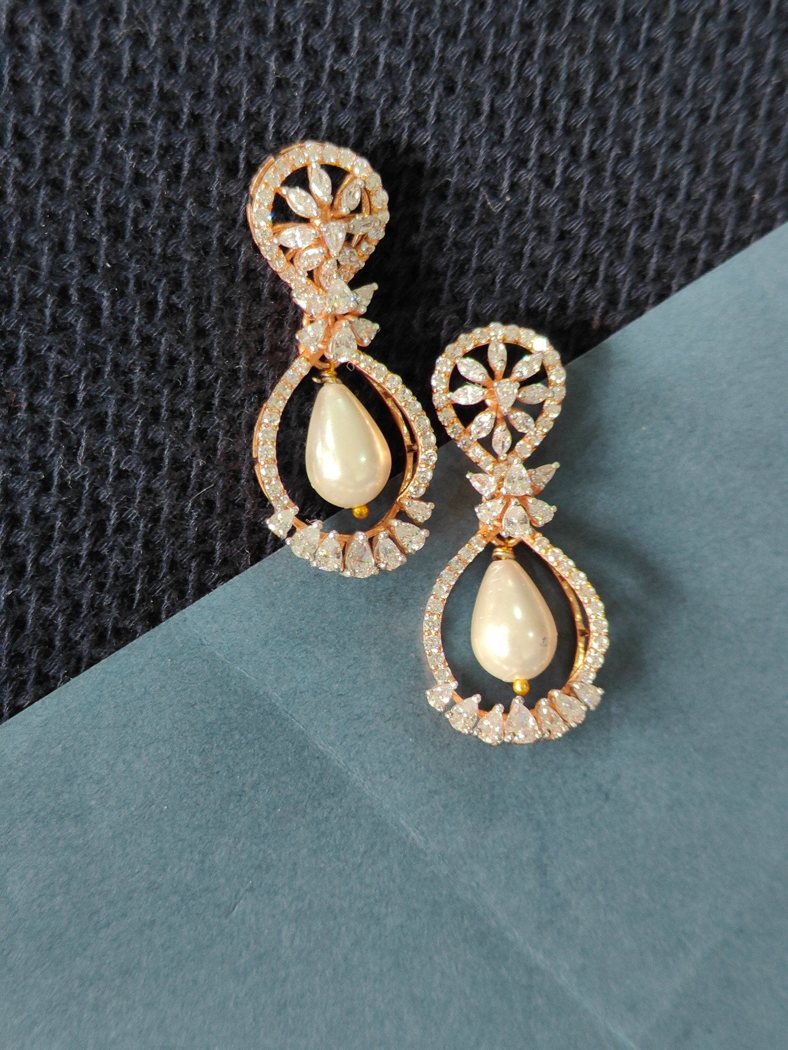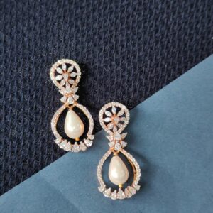 Elegance redefined ✨ Crafted in 925 Hallmarked Sterling Silver, adorned with the finest Cubic Zirconia diamonds, and finished with a delicate drop-shaped Swarovski pearl. Complete your look with the timeless charm of a rose gold finish and screw-back comfort. Perfect for every occasion. 💎