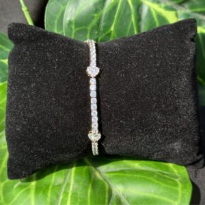 Celebrate the elegance of emotion with the Elegant Heart Accented Tennis Bracelet a delicate piece that perfectly merges classic charm with romantic flair. Craft in high-quality sterling silver or coat with a radiant gold-plated finish. this bracelet has been thoughtfully design to express sophistication. Sparkling round-cut cubic zirconia stones line the length of the bracelet, while subtle heart-shaped accents bring a graceful, symbolic touch. Although understated in size. each detail has been intentionally placed to reflect elegance. making this bracelet a versatile piece for day or evening wear.The Heart Accented Tennis Bracelet showcases sparkling stones paired with charming heart designs, creating a perfect blend of elegance and romance. Ideal for adding a graceful touch to any outfit or occasion.