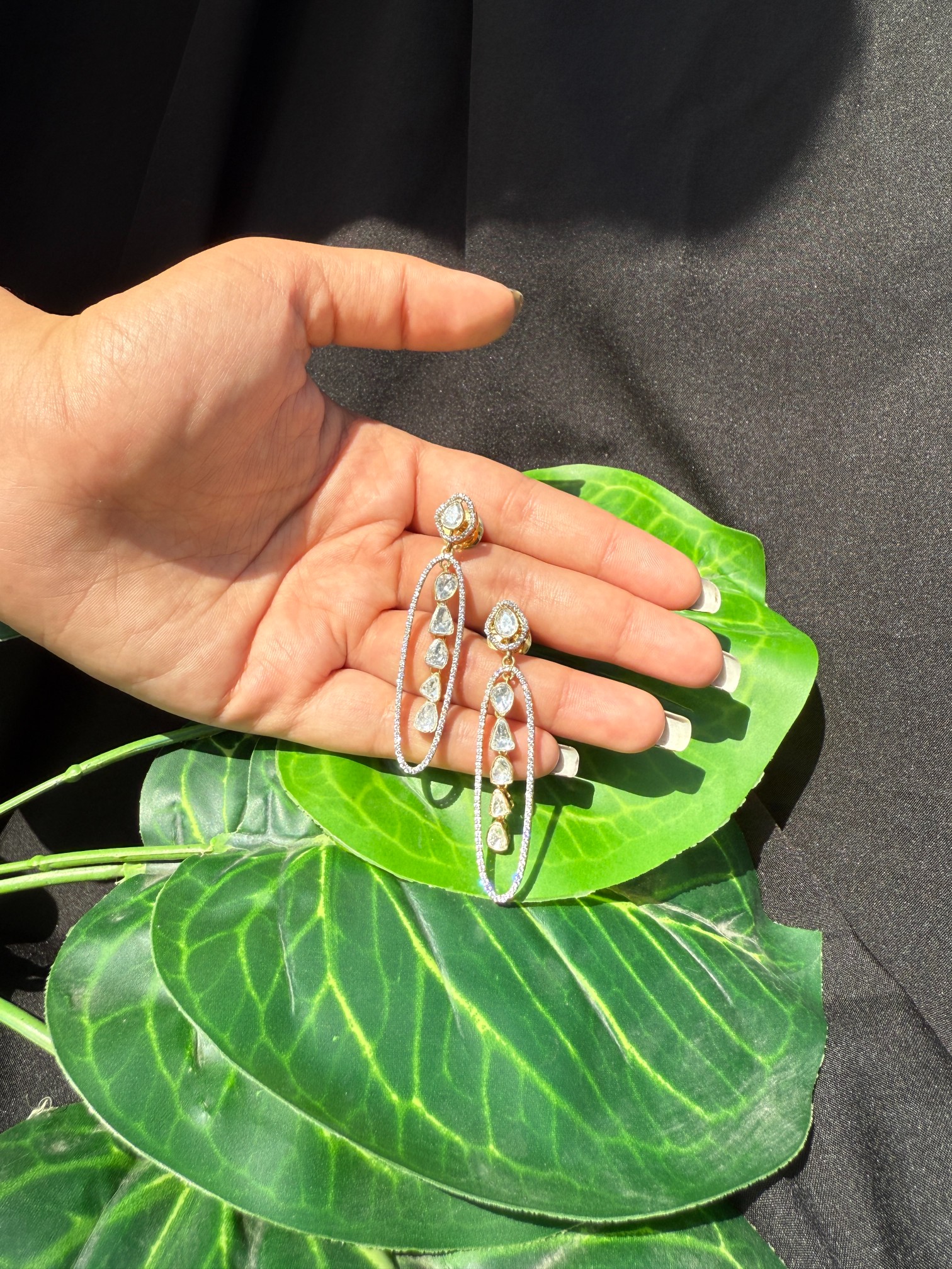 Thanks to the blend of silver and gold tones, they complement both western wear and traditional outfits seamlessly Earrings. Add a touch of glamour with our exquisite Zircon Drop Earrings. Crafted with precision, these earrings feature dazzling zircon stones that radiate brilliance and charm. Elegant Zircon Drop Earrings sparkle gracefully, enhancing every outfit beautifully. Perfect for both casual and formal occasions, the elegant design complements any outfit, making them a versatile addition to your jewelry collection Zircon Drop Earrings.