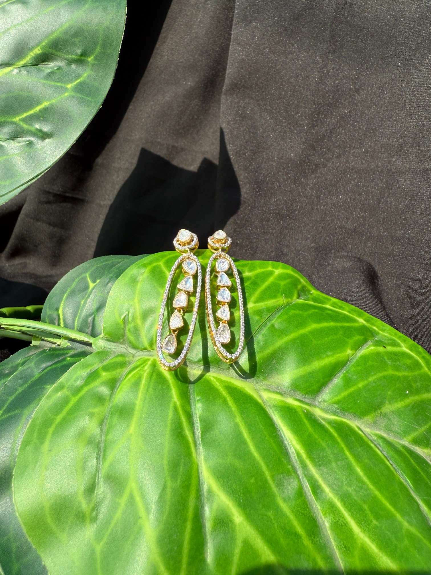 Each pair create with care, using fine materials that reflect expert craftsmanship. While the zircons bring a radiant brilliance, the uncut kundan stones ground the design in timeless Indian elegance. In addition, the dual-tone finish enhances their visual depth, allowing the earrings to pair effortlessly with gold or silver accessories. Their clean lines and artistic framing make them not only unique but also undeniably versatile.
