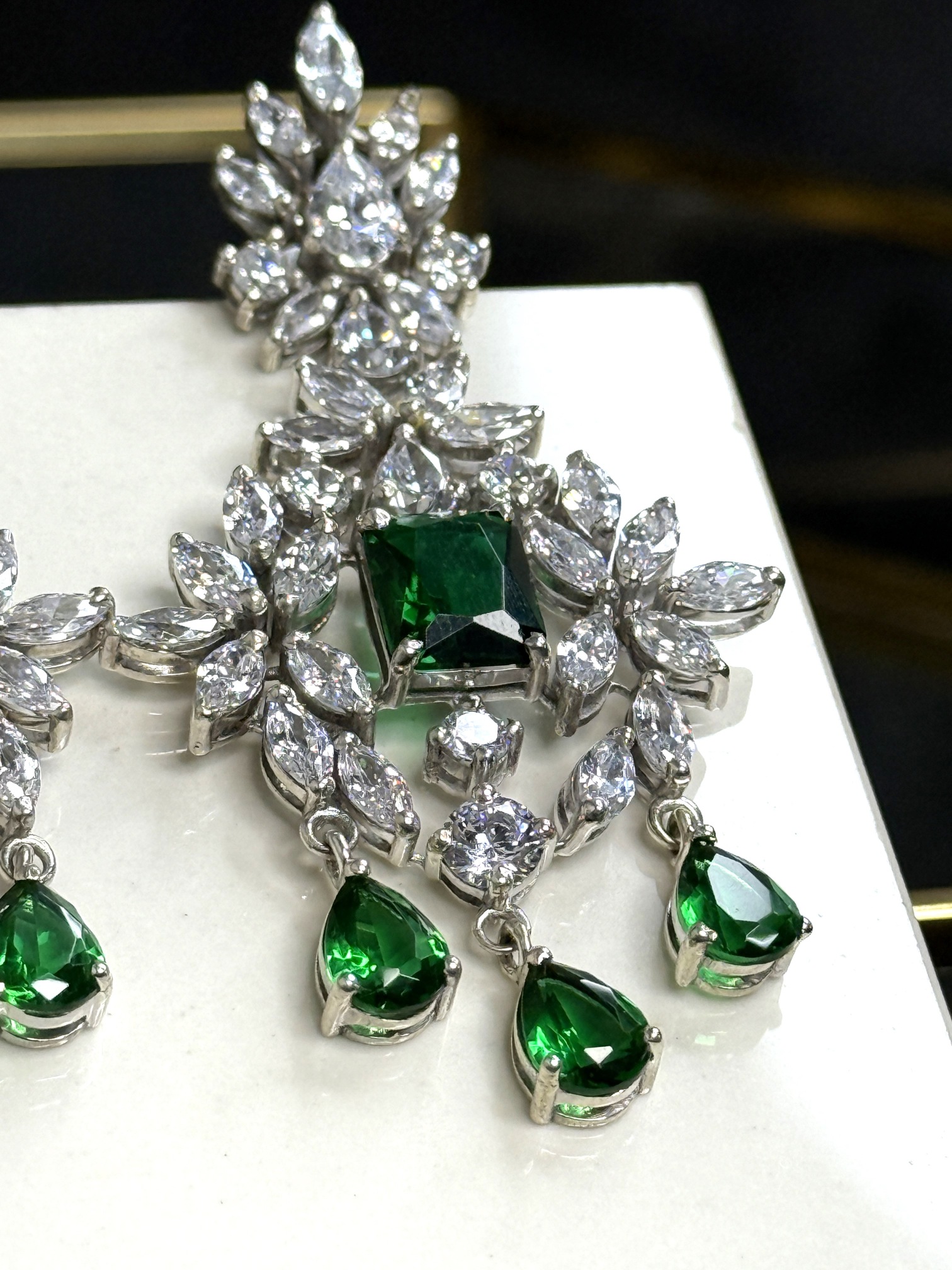 Embrace refined sophistication with the Fineryy Emerald Bloom Marquis Dangler Earrings, designed to make every moment shine brighter. Crafted in 925 sterling silver, these earrings feature a harmonious blend of sparkling CZ stones and vivid green gemstones. The marquise-shaped clusters frame a bold square-cut centerpiece, creating a look that’s both regal and enchanting.