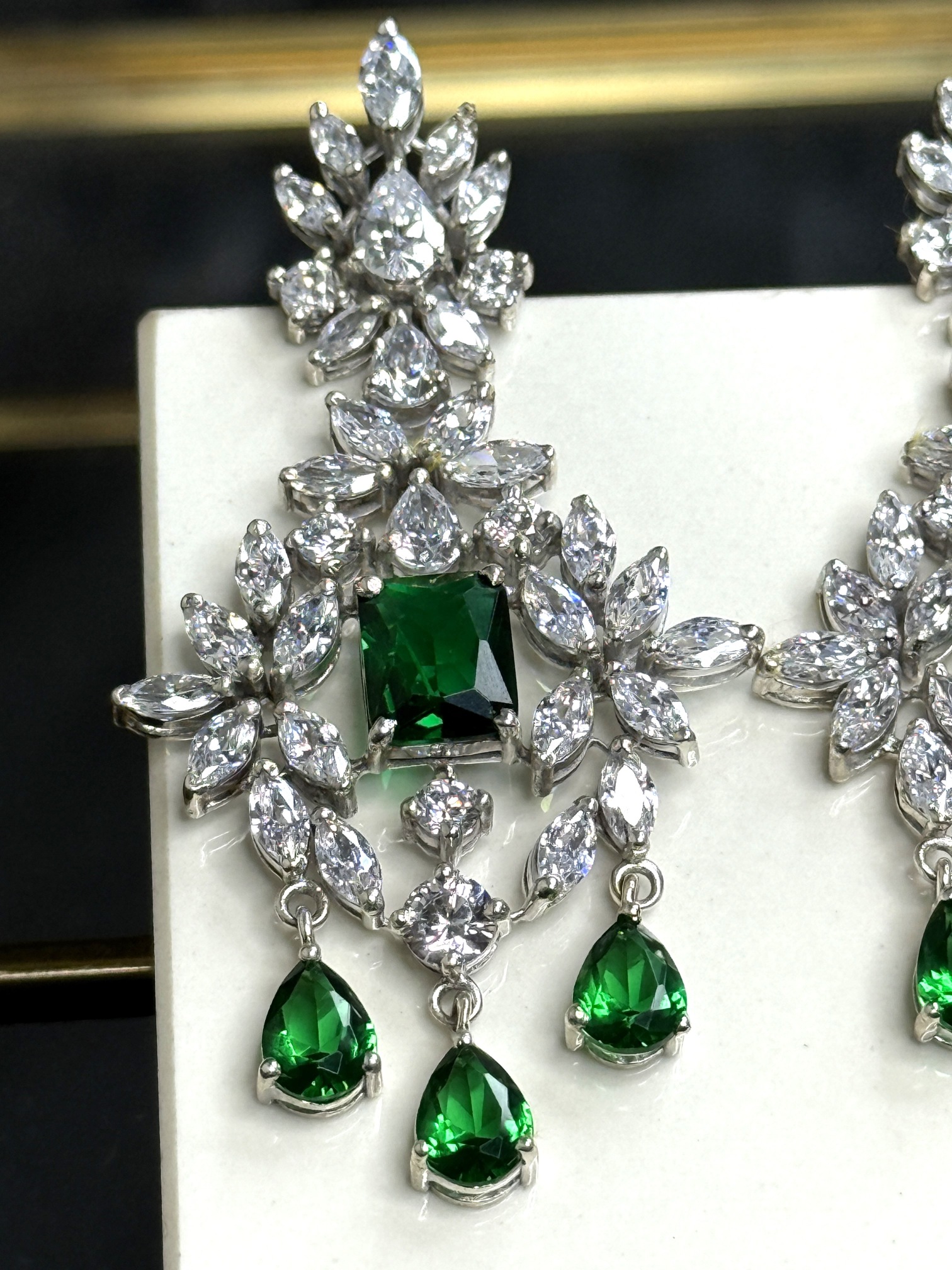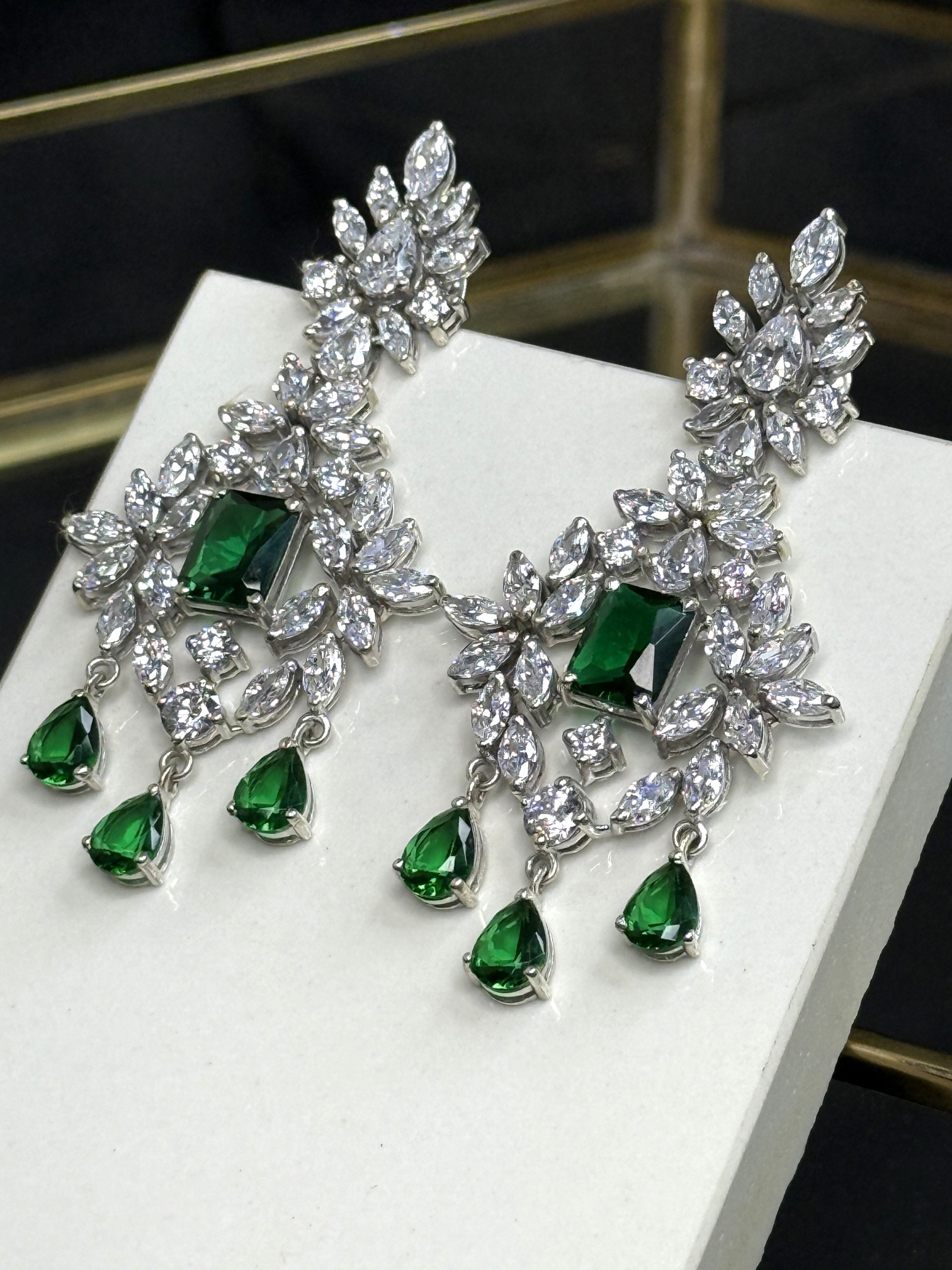 Each element of the Emerald Bloom Earrings reflects Fineryy’s dedication to excellence — from the precision-set marquise stones that mimic nature’s grace to the gentle drops that sway with every movement. The high-polish silver enhances the brilliance of the green stones, ensuring a mesmerizing sparkle that captures attention from every angle.