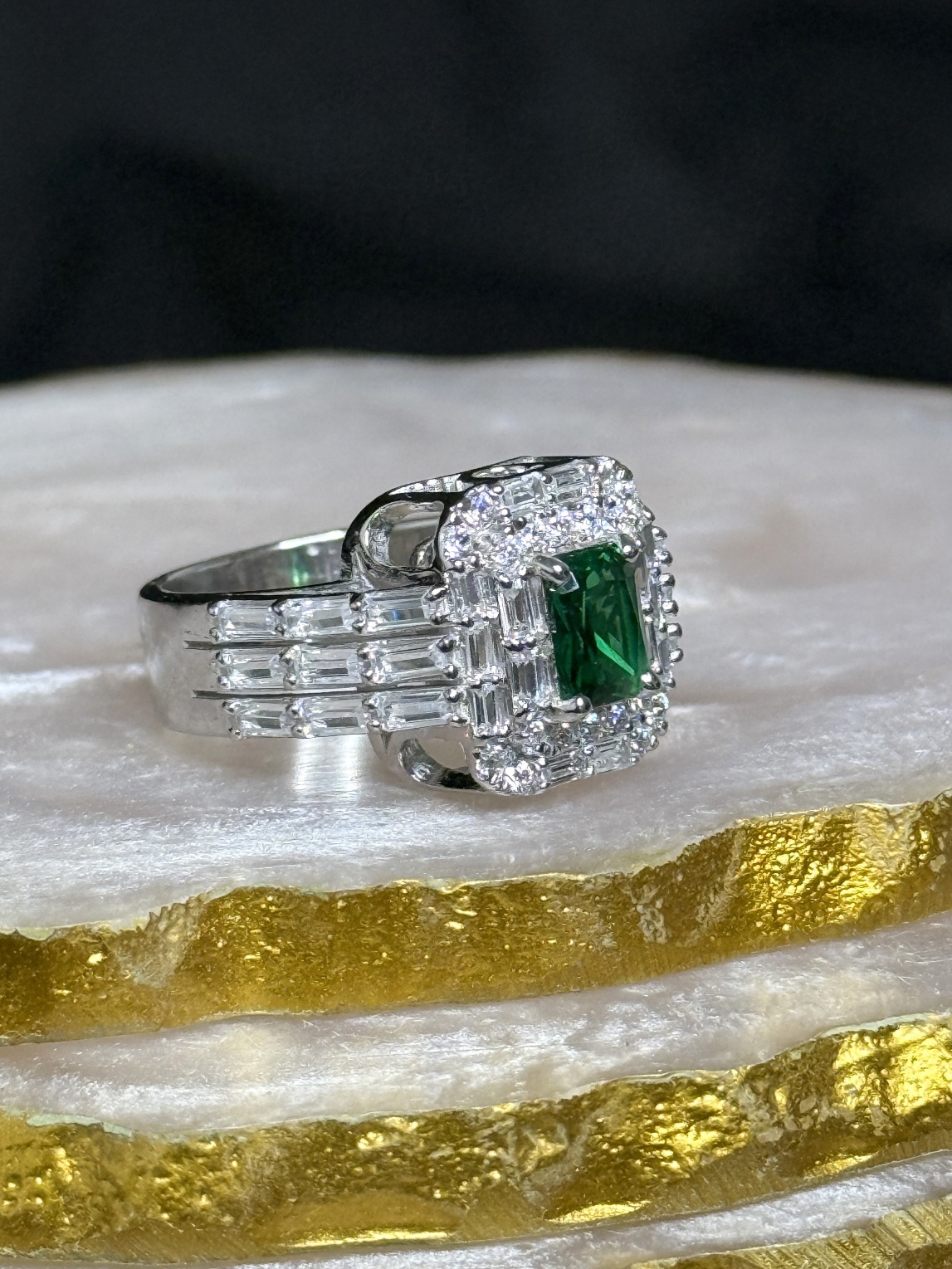 Craftsmanship with a Modern Edge – Green Centre Baguette CZ Ring