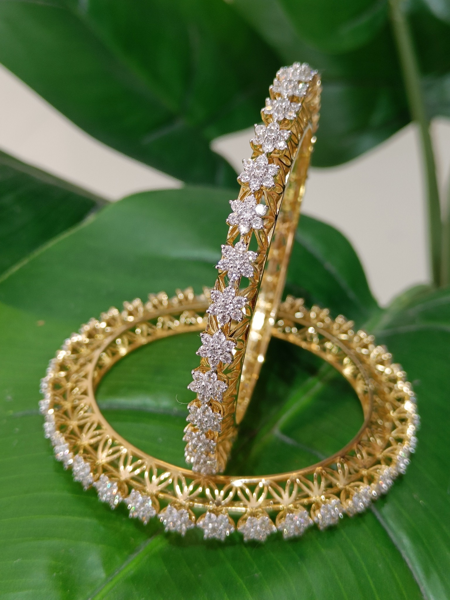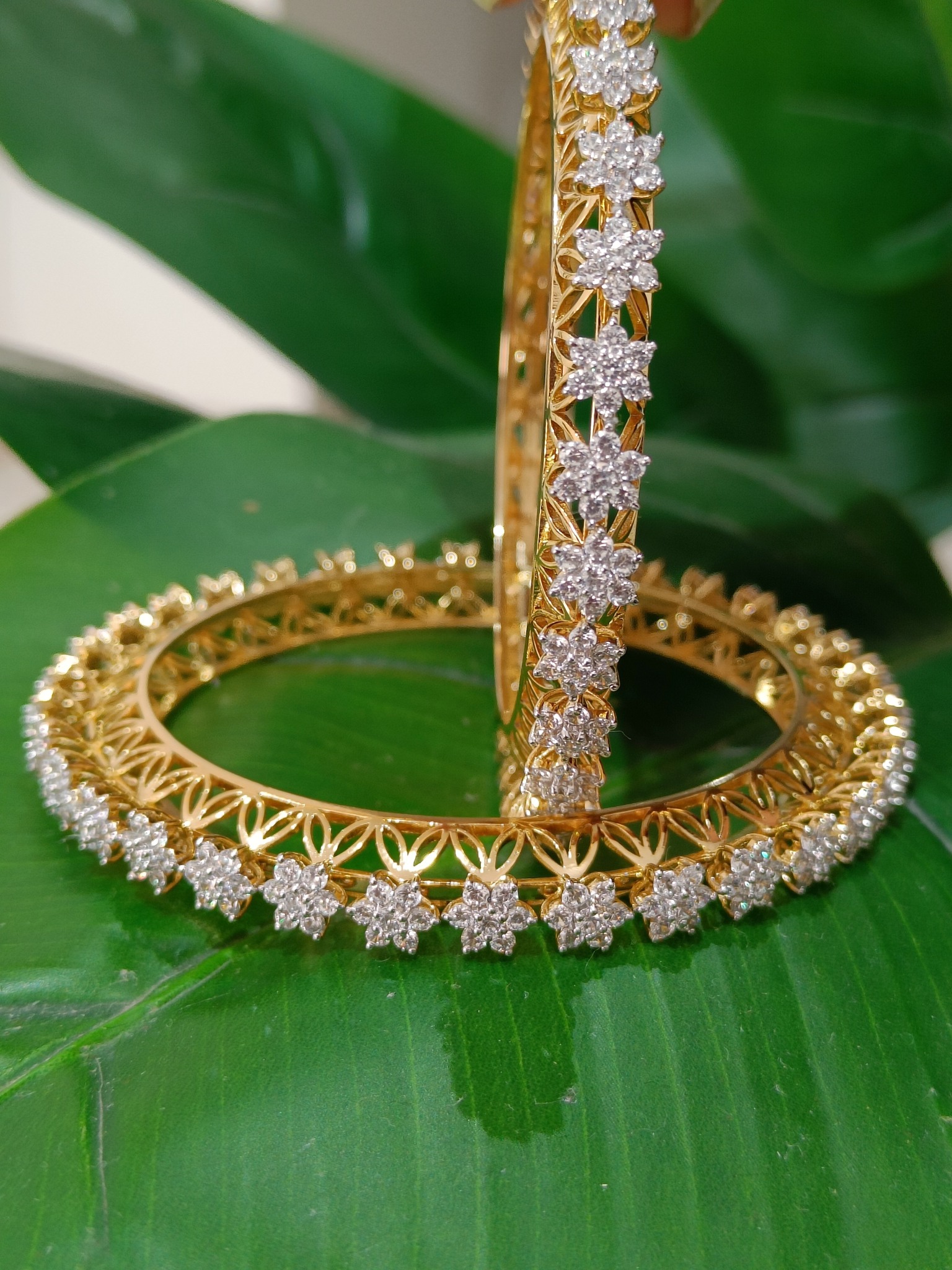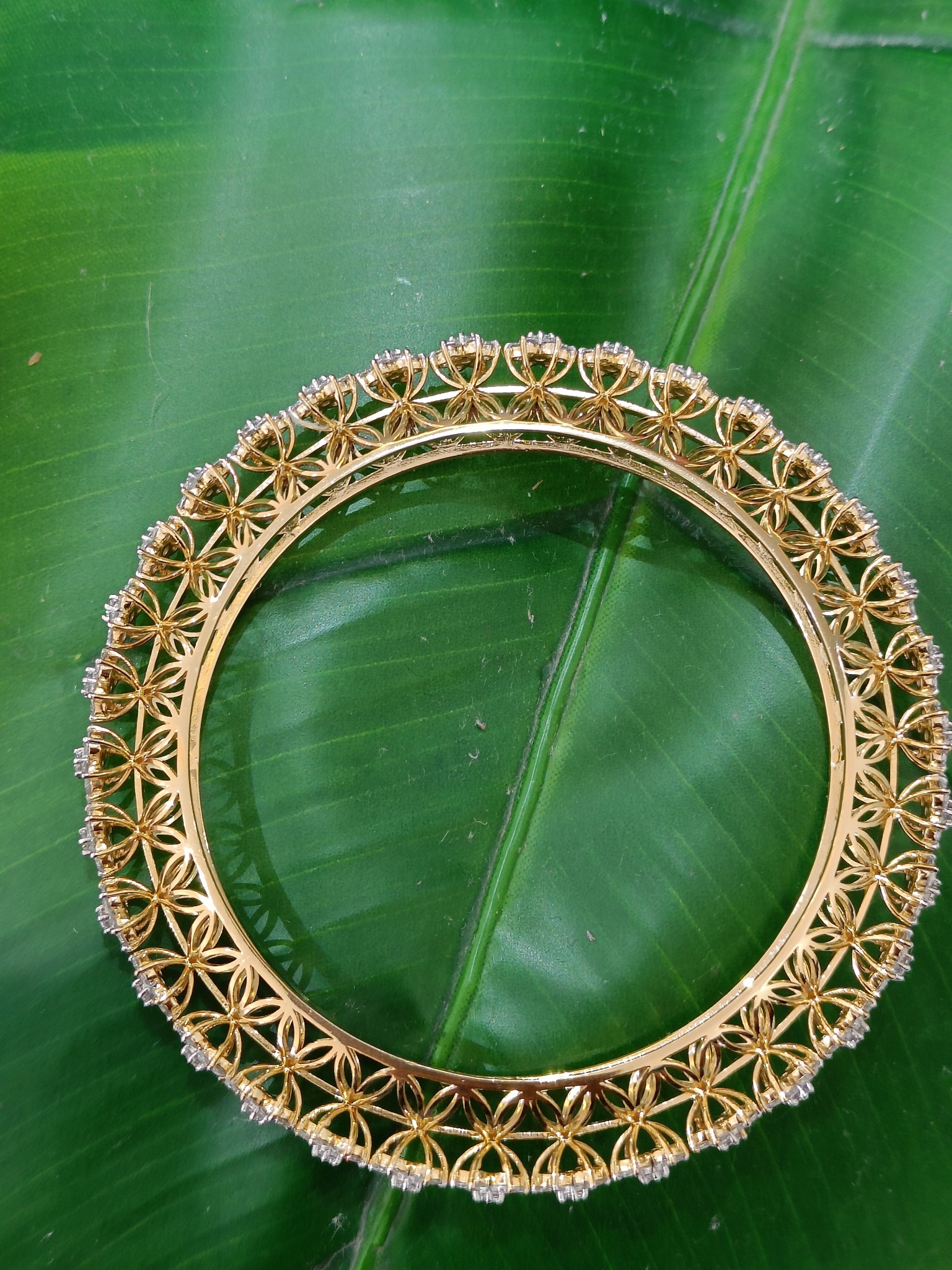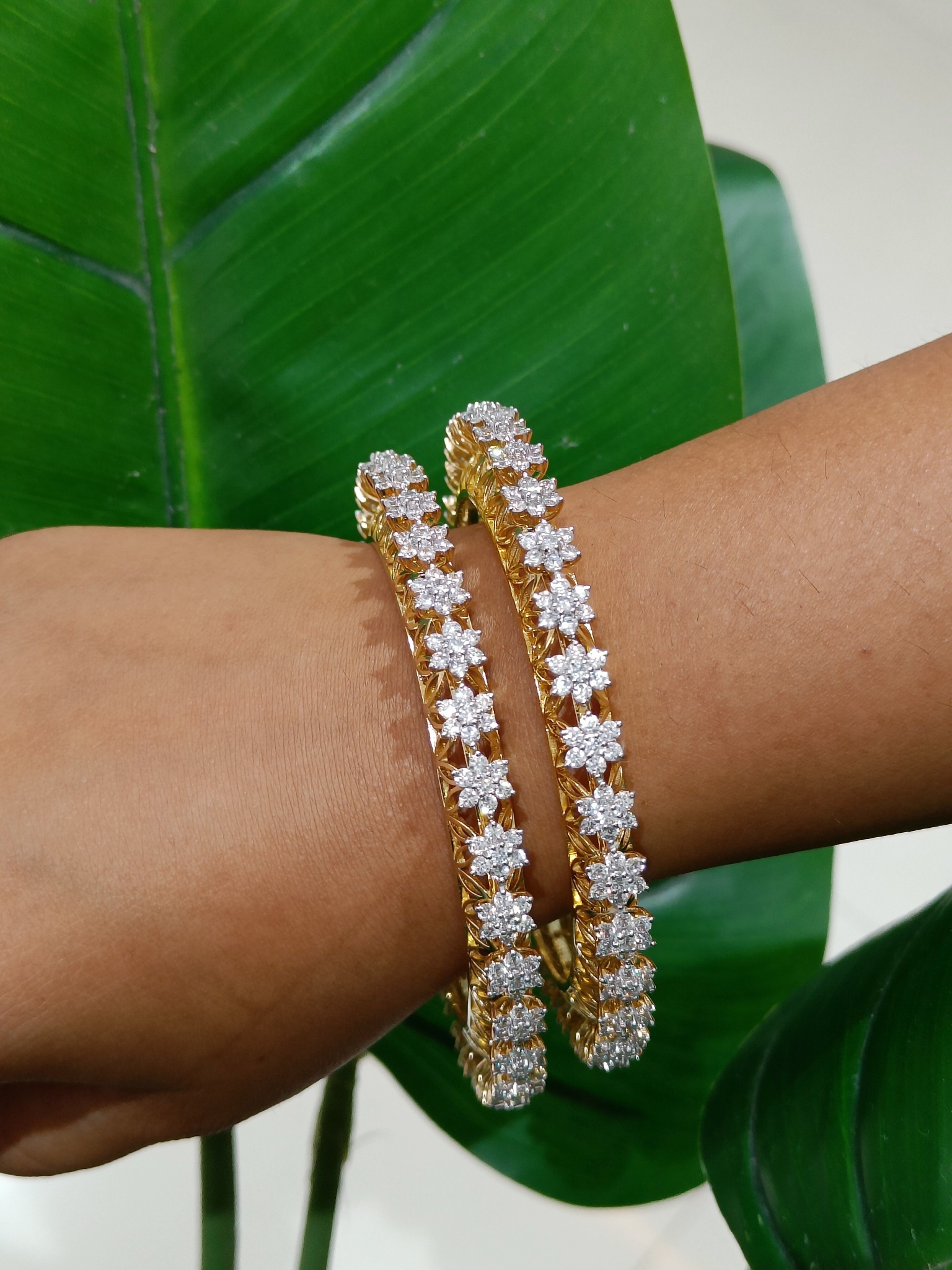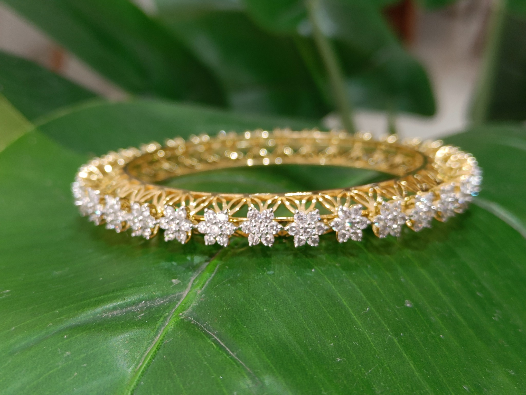 Step into sophistication with the Fineryy Floral Sparkle Bangle, a masterpiece that radiates charm with every flick of the wrist. Crafted in 925 sterling silver and polished in rich gold tones, this bangle features delicately arranged floral motifs that dazzle with high-quality CZ stones — making it an ideal companion for both festive celebrations and elegant evenings.