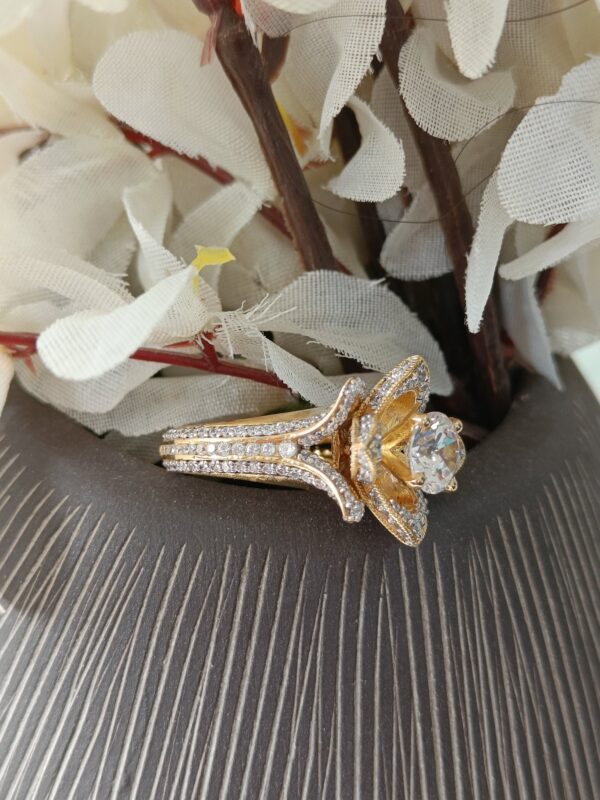 Tags: 5A quality cubic zirconia, 925 hallmarked, 925 silver, chique look, floral solitaire ring, flower solitaire ring, luxury floral jewelry India, occasional wear, ring for her, silver flower solitaire ring, silver jewellery, silver ring, solitaire flower ring, solitaire ring, sterling silver, sterling silver ring, stunning ring, valentine gift, yellow gold ring