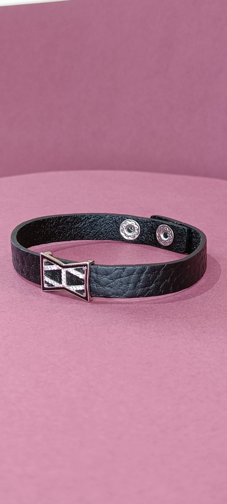 Elevate your everyday style with Fineryy’s Geometric Bow Leather Bracelet, a fusion of elegance and edge. Crafted from premium black leather and adorned with a bow-shaped geometric centerpiece in 925 sterling silver, this bracelet is enhanced with sparkling CZ stones that add a refined touch of brilliance.