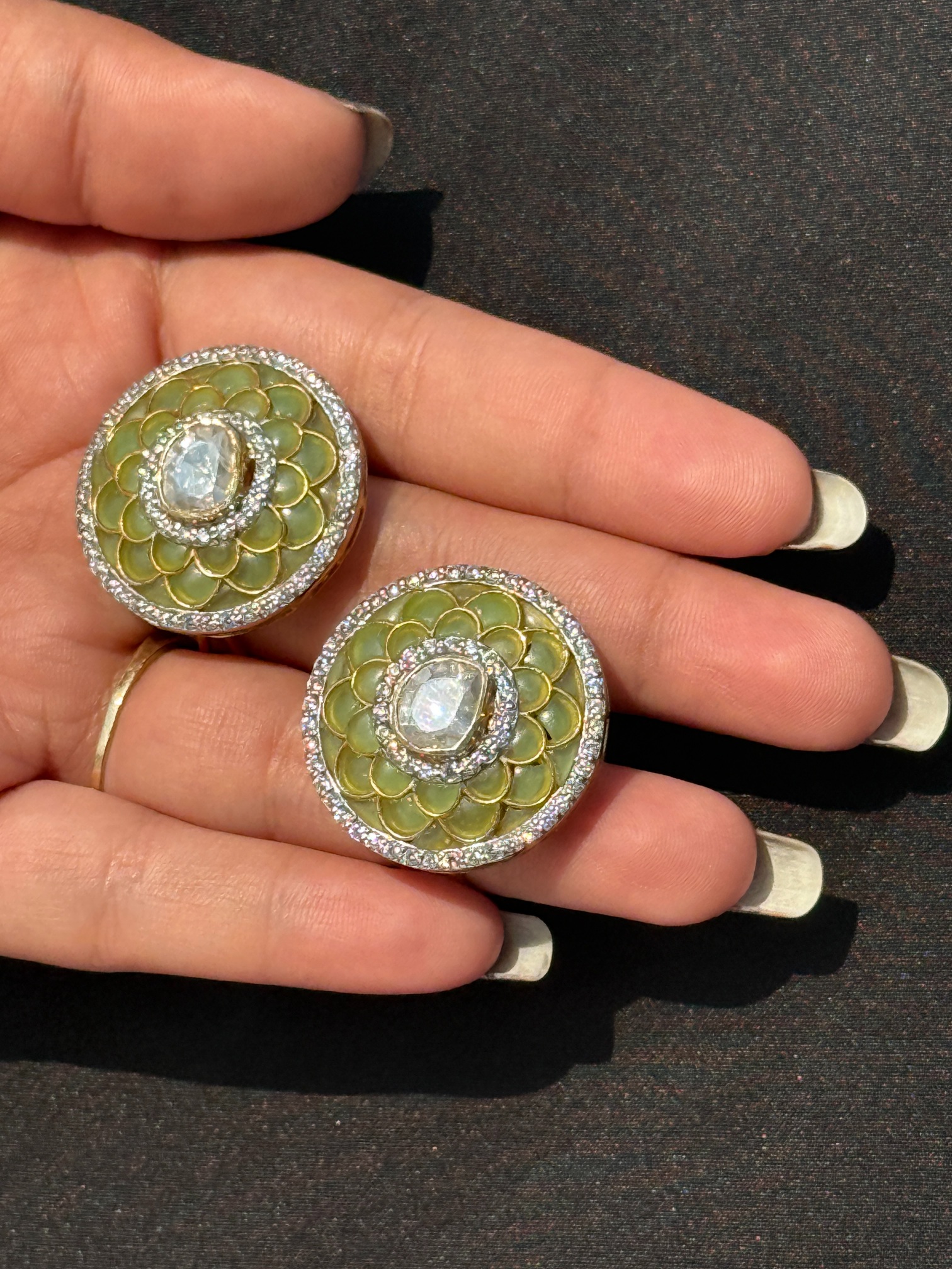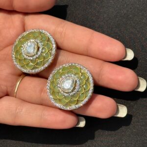 A Timeless Fusion Of Heritage And Elegance, These Handcrafted Enamel Earrings Feature A Stunning Polki Diamond Centerpiece, Set In 925 Sterling Silver. The Intricate Enamel Detailing Enhances The Classic Charm, Making Them A Perfect Accessory For Any Occasion. Designed For Convenience, They Come With Both Screw-Back And Clip-On Options For A Secure And Comfortable Fit.