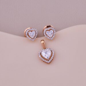 Each element of this pendant set expertly designed to offer both brilliance and comfort. The fine solitaire setting elevates the central stone, allowing maximum light reflection from every angle. While the rose gold polish adds a soft, romantic hue, the sterling silver base ensures durability and timelessness. Due to its delicate structure and thoughtful details, the set remains lightweight yet impressive. Additionally, the halo of zirconia accents enhances depth, making the heart shape even more radiant. Whether styled with a formal gown or a casual look, this pendant enhances every moment.