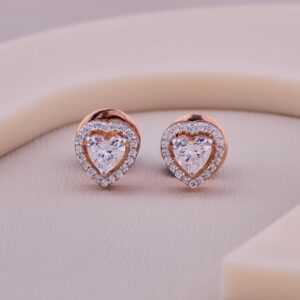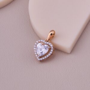 With graceful lines and exquisite shimmer, the Heart Shape Solitaire Pendant Set in Silver embodies timeless beauty. A brilliant heart-shaped centerpiece steals the spotlight, encased in a delicate halo of dazzling accent stones. The pendant is beautifully crafted in 925 sterling silver, finished with a soft rose gold polish that enhances its warmth. This gentle contrast adds sophistication while allowing the sparkle of the stones to shine through effortlessly. Designed to symbolize love and elegance, this piece fits seamlessly into both romantic occasions and everyday wear. Because of its thoughtful craftsmanship, it offers charm without compromise.