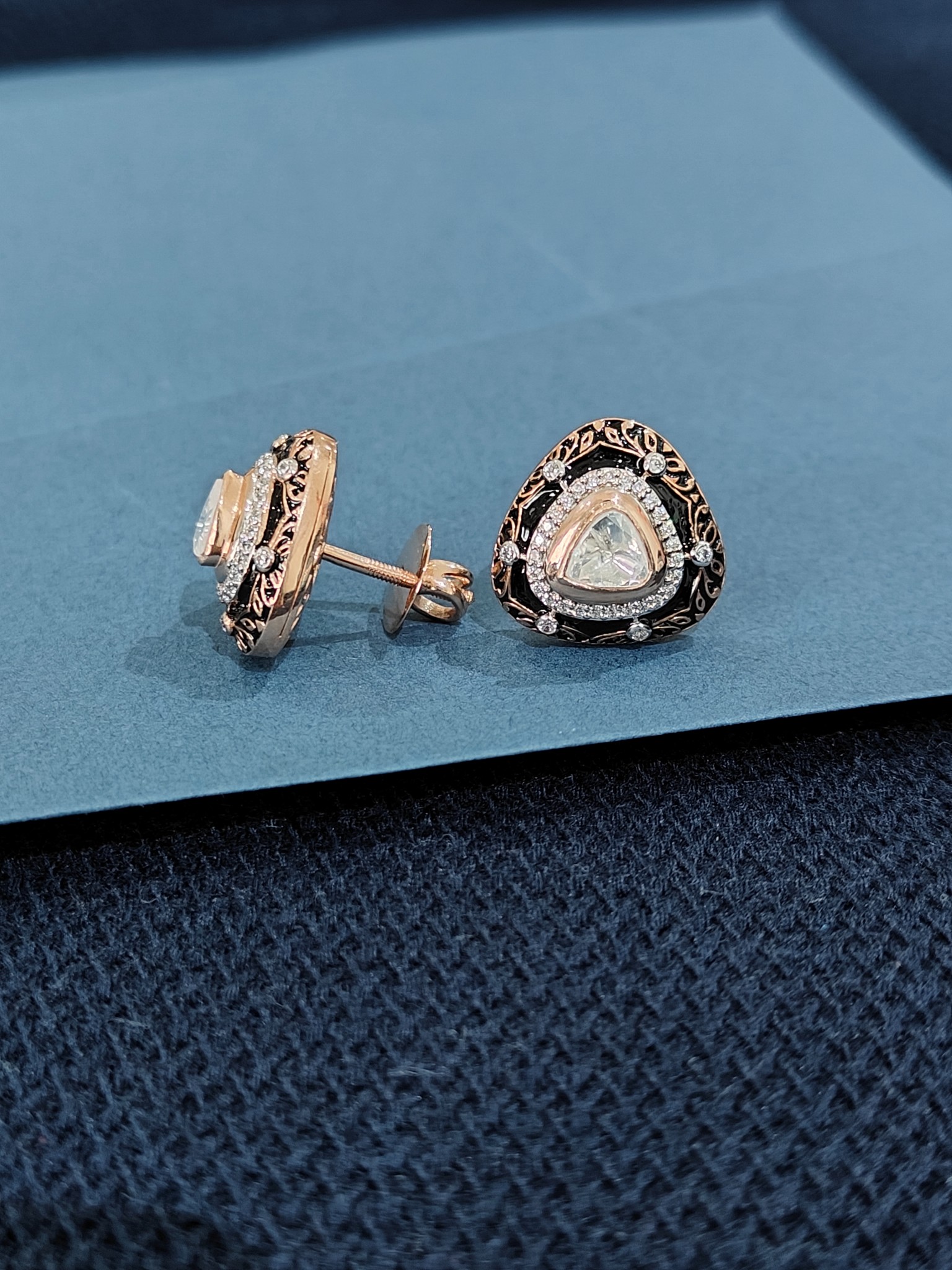 Elevate your elegance with our stunning **925 Sterling Silver Stud Earrings**, featuring a delicate **Rose Gold Polish** and adorned with **Moissanite Polki**. A touch of **Black Enamel** adds a contemporary edge, making these earrings the perfect blend of tradition and modernity.