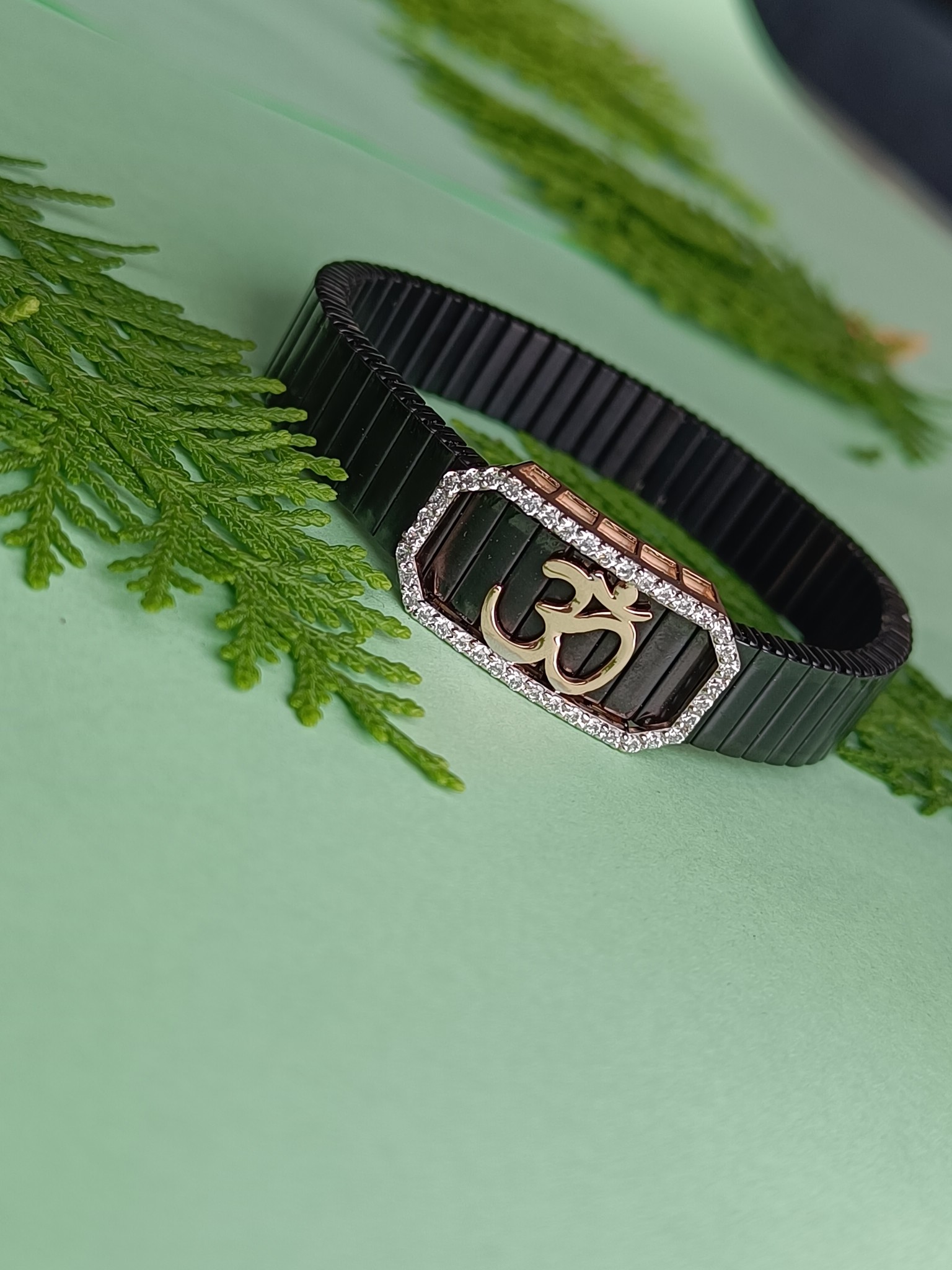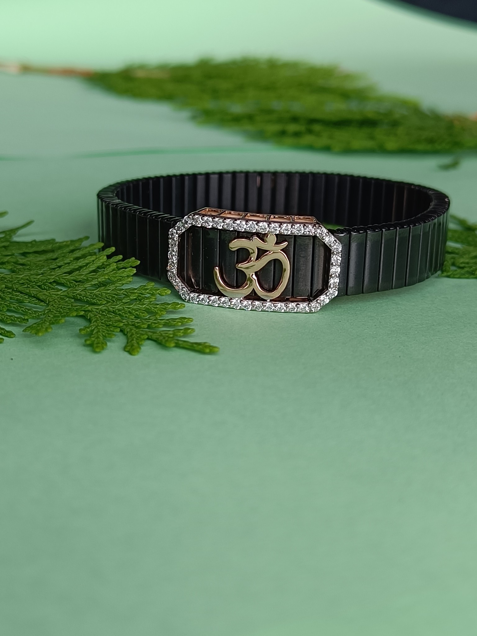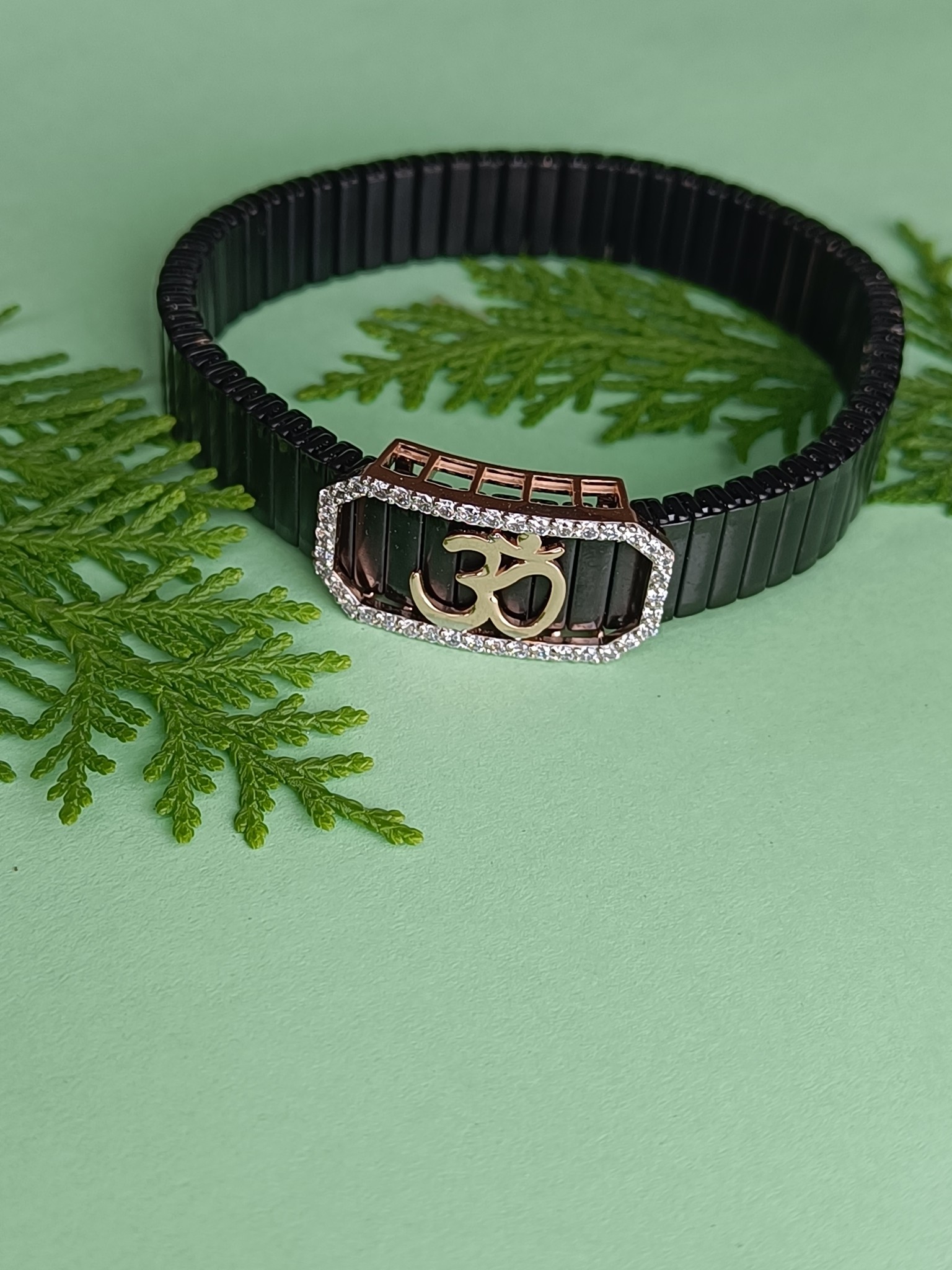 This stunning bracelet is made from 925 Sterling Silver, ensuring durability, lasting shine, and a hypoallergenic finish for maximum comfort. The Om symbol, a sacred representation of the universe and inner peace, is carefully designed with premium 5A Brilliant-Cut Cubic Zirconia Diamonds, adding a touch of elegance and radiance.