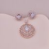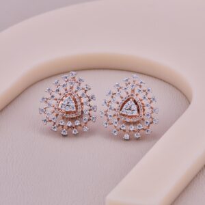 Every piece from Fineryy is a reflection of artistic finesse, and this pendant set is no exception. The rose gold base enhances the brilliance of finely set CZ stones, creating a luminous contrast that draws every gaze. The intricate halo pattern amplifies the centerpiece’s radiance, giving a 3D illusion of depth and light. Accompanied by matching earrings, this set beautifully blends traditional elegance with a touch of modern glamour — ideal for today’s sophisticated woman.