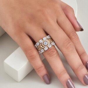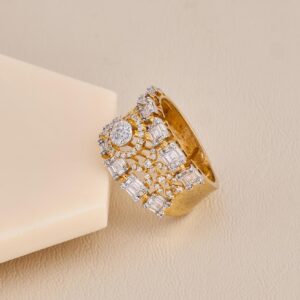 Dual Tone Elegance: The blend of yellow gold and rhodium gives this ring a lavish yet versatile appearance.