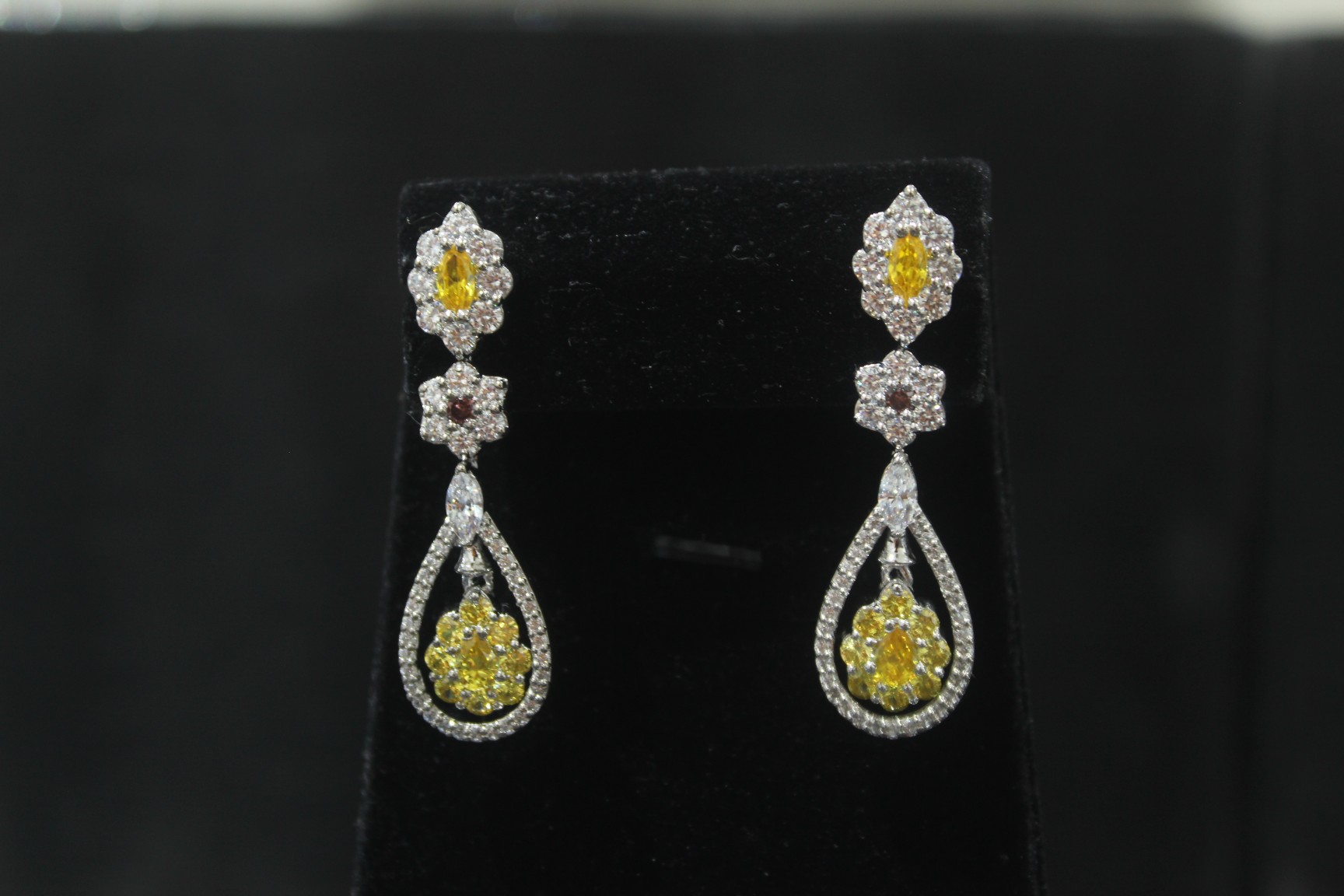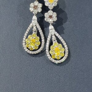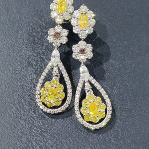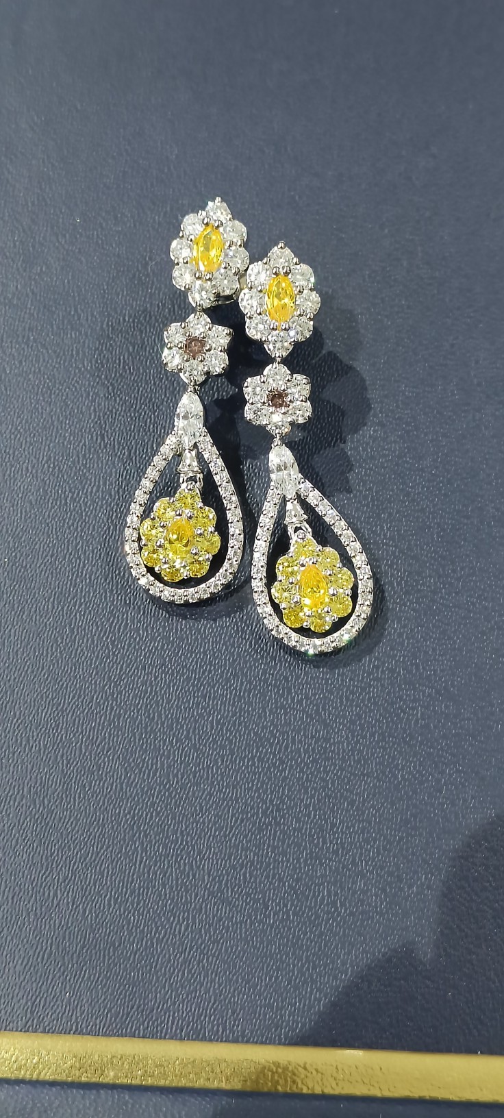 Illuminate your style with Fineryy’s Sunshine Bloom Drop Earrings, a graceful fusion of brightness and luxury. Handcrafted in 925 sterling silver, these earrings feature intricate floral motifs adorned with vibrant yellow CZ stones. The teardrop-shaped frame enhances the design’s sophistication, making every sparkle a reflection of timeless charm and elegance.