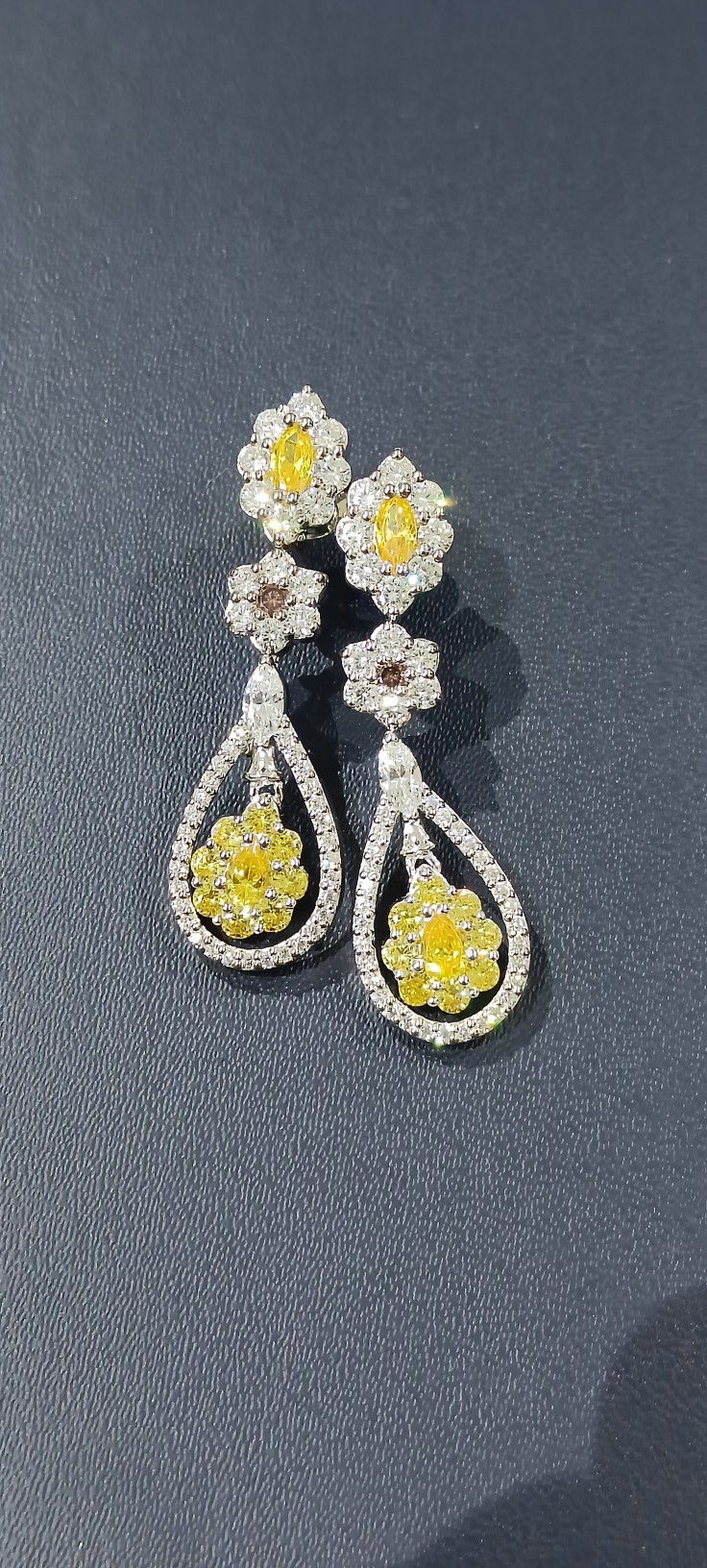 Each petal is meticulously set with high-quality Cubic Zirconia, capturing the essence of blooming florals kissed by sunlight. The dual floral clusters and dangling teardrop add dimension and movement, while the silver base ensures a lasting shine. It’s a perfect harmony of artistry and brilliance that defines Fineryy’s signature craftsmanship.