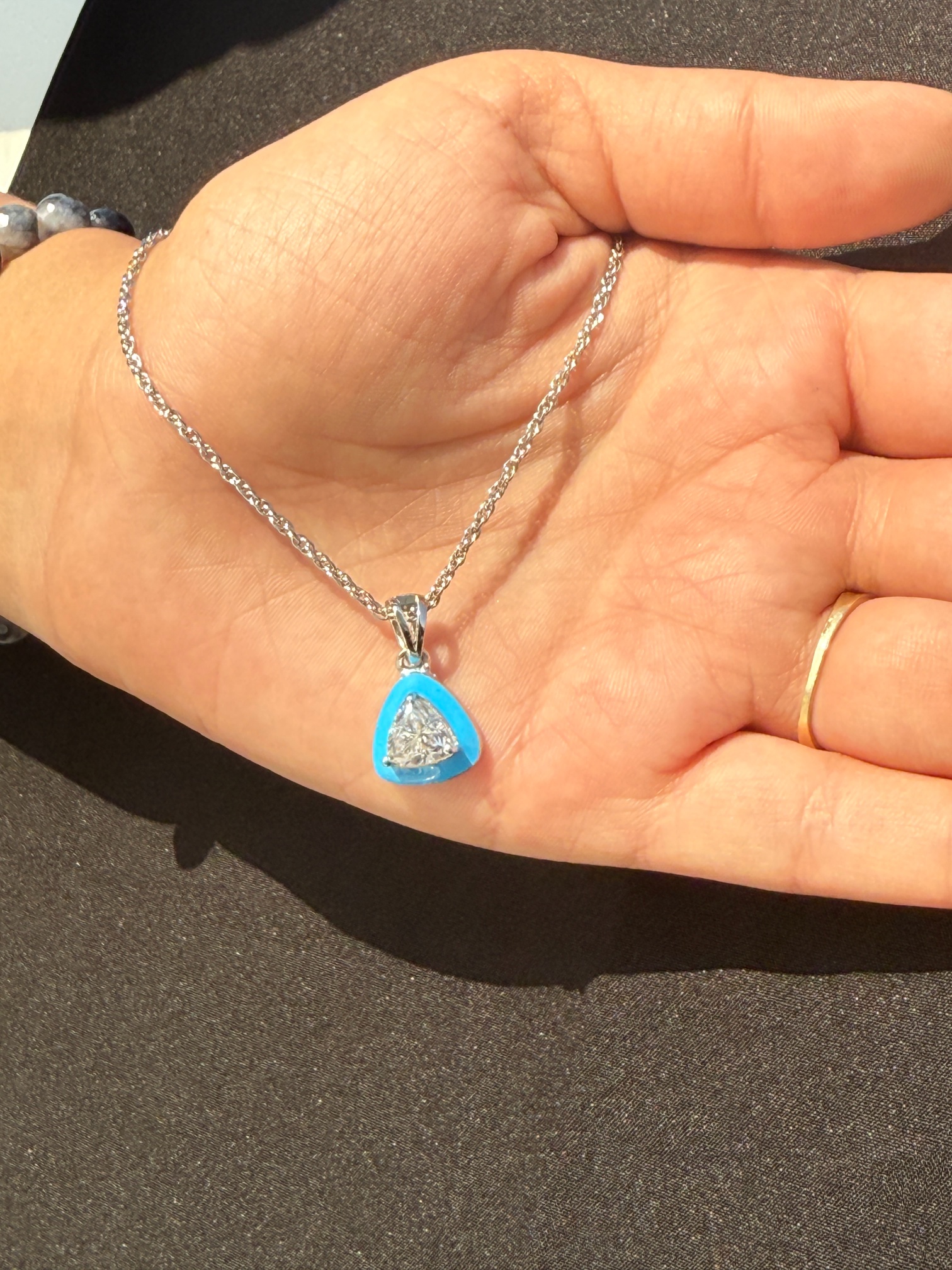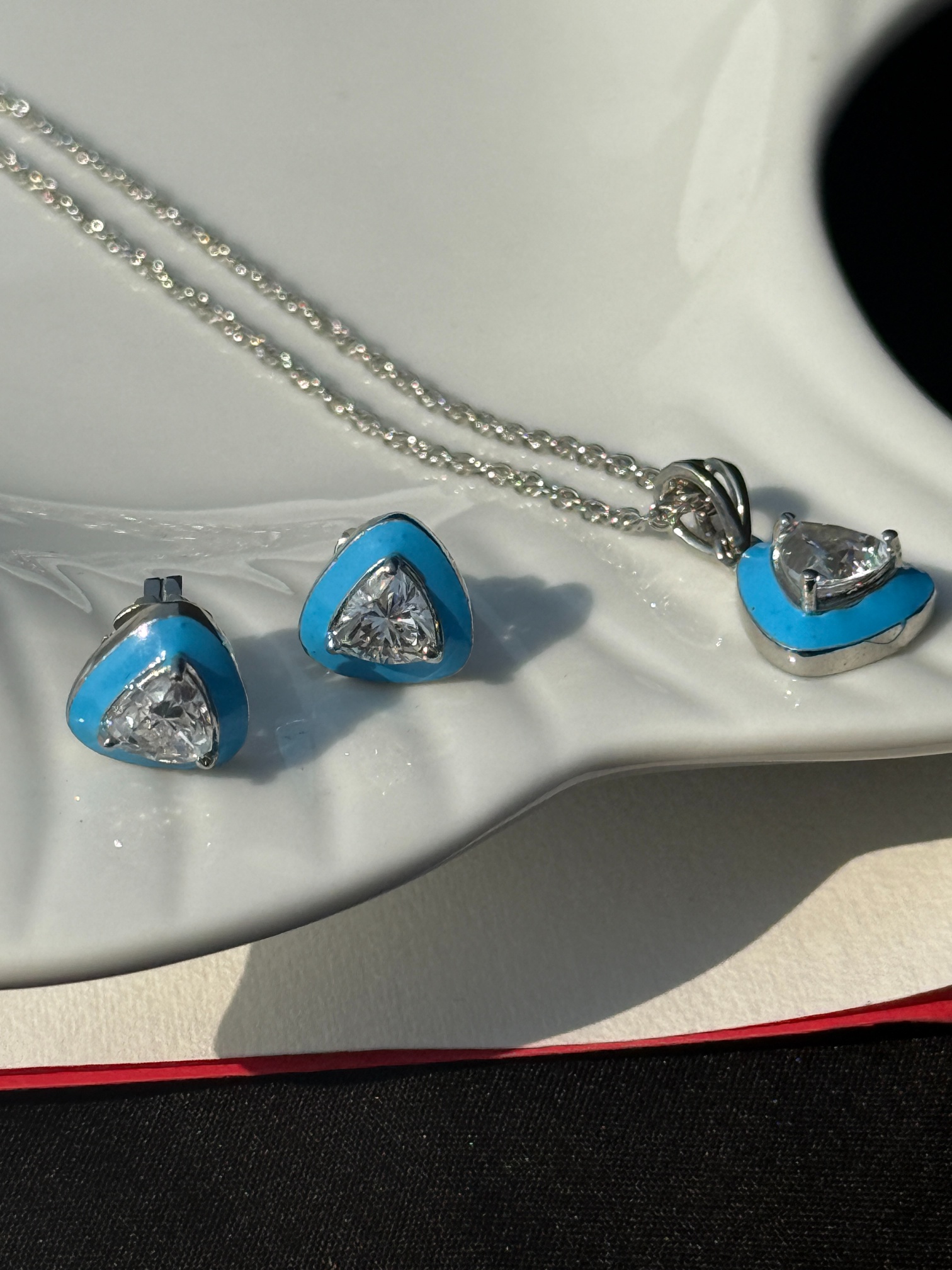From casual brunches to formal dinners, this Turquoise Enamel & Trillion-Cut Zirconia Silver Jewelry Set fits effortlessly into any wardrobe. Its versatile tone allows it to pair well with both bold colors and neutral palettes. With the rising popularity of zirconia jewelry & colored enamel accessories, this set keeps you fashion-forward while maintaining a refined edge. It has been designed not just to complement, but to elevate your personal style. Given as a gift or bought for yourself, this set will always leave a lasting impression Turquoise Enamel Set.