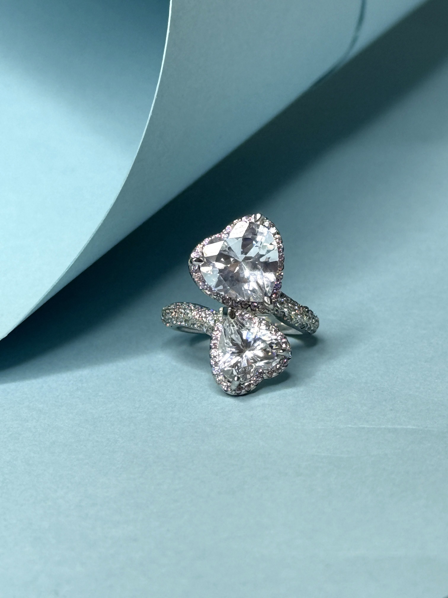 Fineryy’s artisans have meticulously set every detail to create a ring that radiates brilliance from every angle. The twin hearts are delicately embraced by a shimmering band lined with micro CZ stones, adding depth and fire to the design. Its contemporary silhouette and luxurious sparkle make it an exquisite choice for engagements, anniversaries, or simply celebrating love every day.