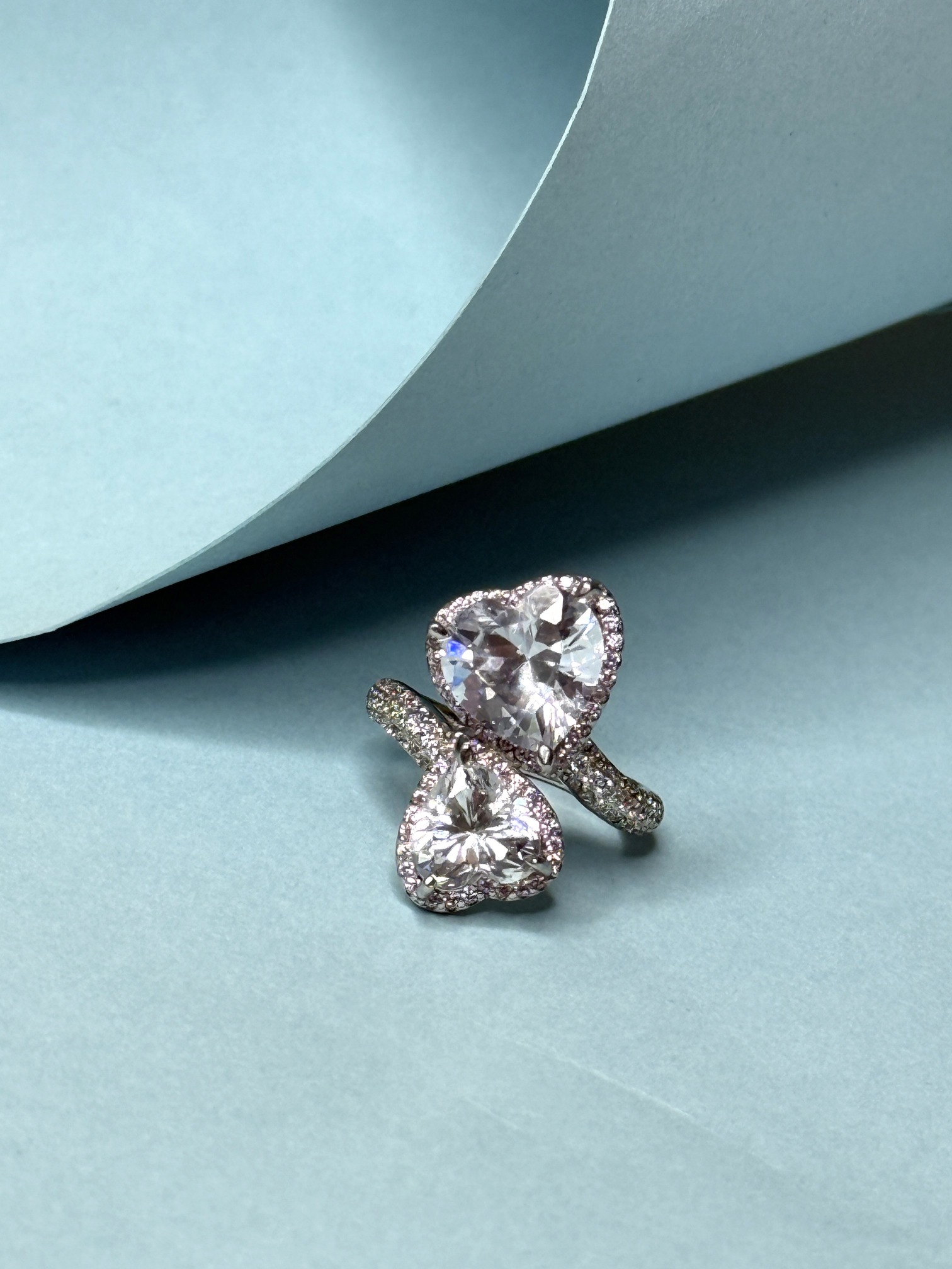 Celebrate love, unity, and timeless elegance with the Fineryy Two Heart Solitaire Ring. This stunning design features two heart-shaped solitaires that gracefully intertwine, symbolizing the unbreakable bond between two souls. Each sparkling stone reflects the purity of emotion and the beauty of togetherness, making it the perfect piece for expressing heartfelt affection.